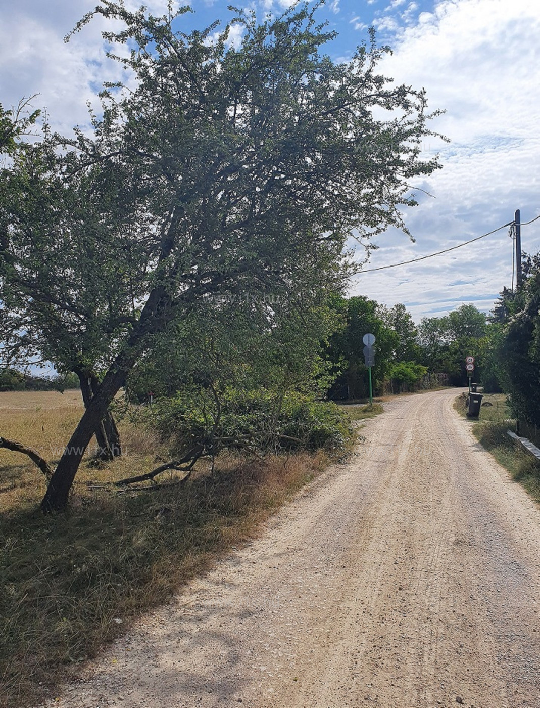 A telekhez vezető út nagy része aszfaltozott, a villany a telek előtt található, víz az utcafronthoz közelebbi telken belül van, ez a telek körbekerített, füvesített, a másik fás-bokros.